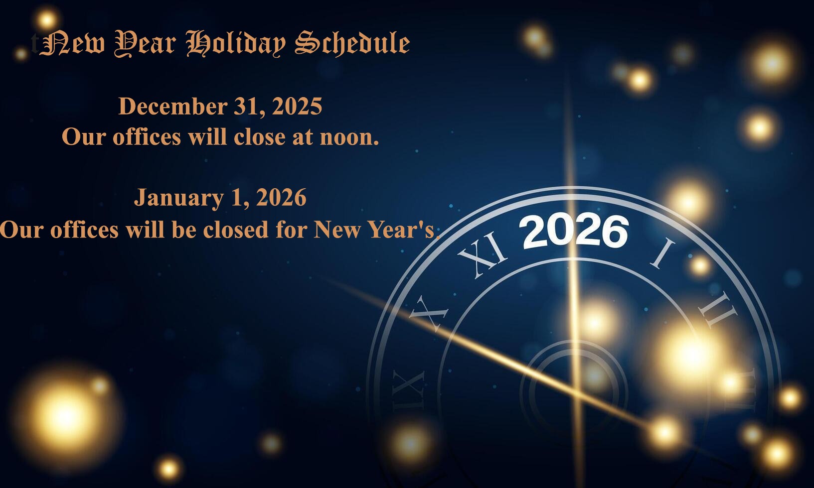 New Year Holiday Schedule